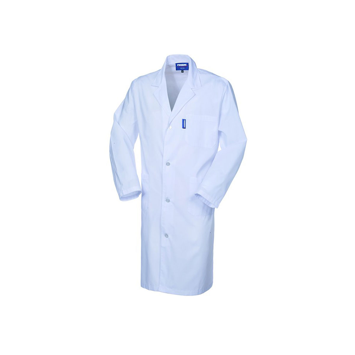 Camice da lavoro con chiusura centrale con bottoni scoperti, collo a rever. |