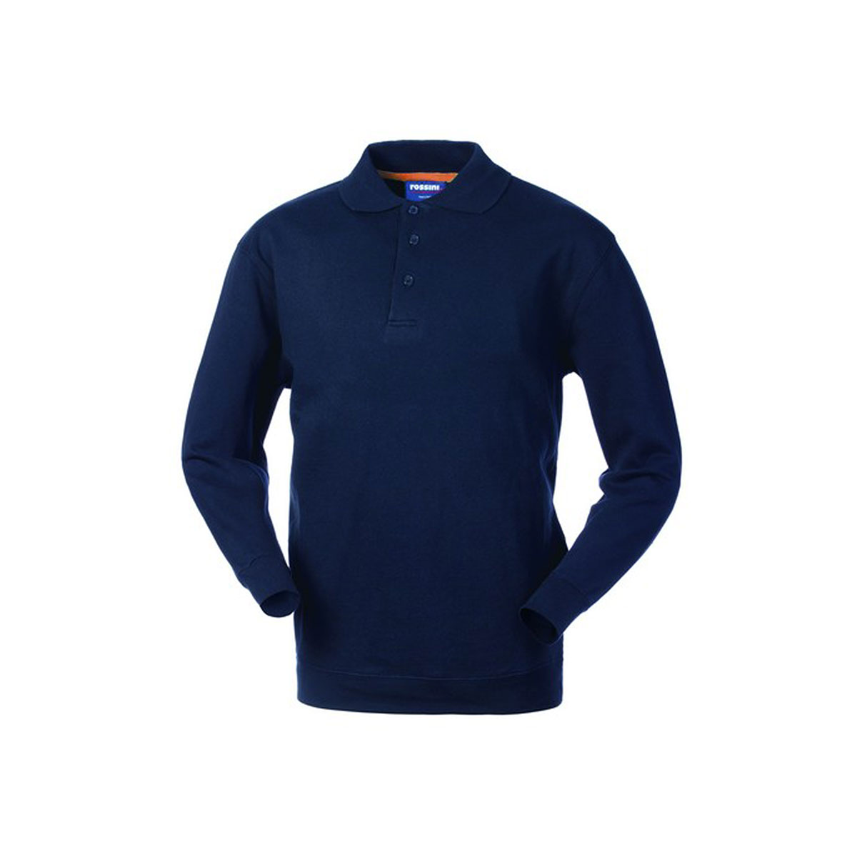 Felpa con collo a polo chiuso con tre bottoni, parasudore interno al collo, giromaniche dritto. |