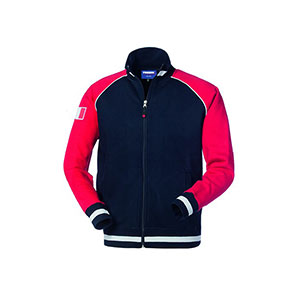 Felpa con collo alto chiuso con mezza zip (in metallo solo per il colore bianco), parasudore interno al collo di colore a contrasto arancio (in tinta per il colore bianco), polsi e fascia girovita in maglia elastica. |