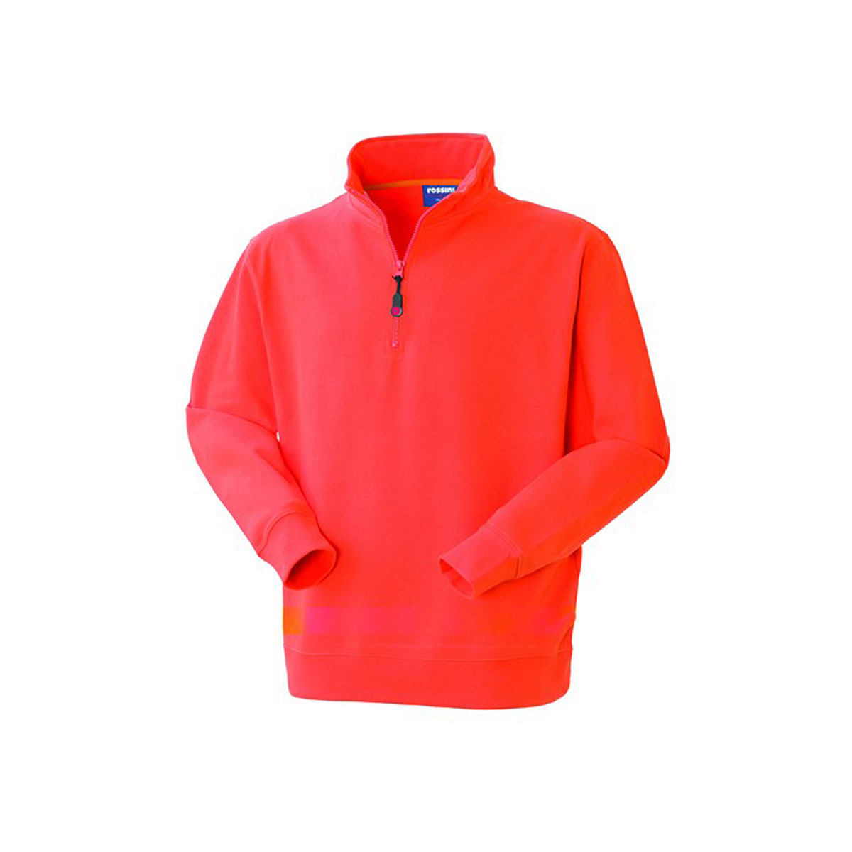 Felpa con collo alto chiuso con mezza zip (in metallo solo per il colore bianco), parasudore interno al collo di colore a contrasto arancio (in tinta per il colore bianco), polsi e fascia girovita in maglia elastica. |