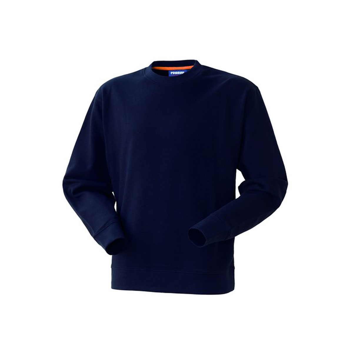 Felpa con parasudore interno al collo di colore a contrasto arancio (in tinta per il colore bianco), polsi e fascia girovita in maglia elastica. |