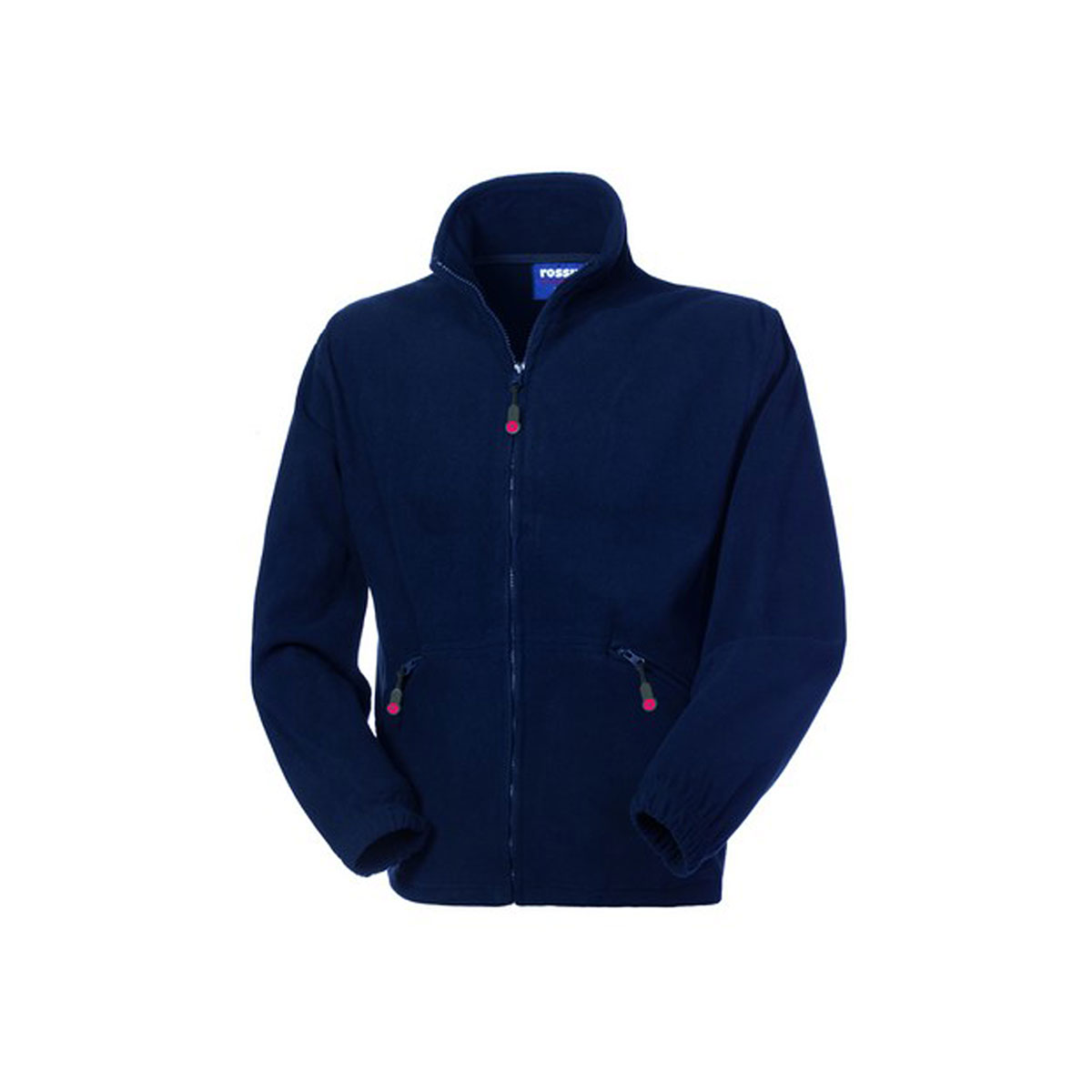 Pile con collo alto con zip centrale aperta fino al fondo. |