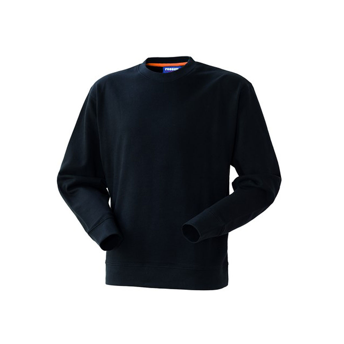 Felpa con parasudore interno al collo di colore a contrasto arancio (in tinta per il colore bianco), polsi e fascia girovita in maglia elastica. |