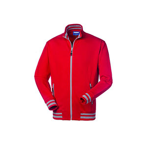 Pile con collo alto con zip centrale aperta fino al fondo. |