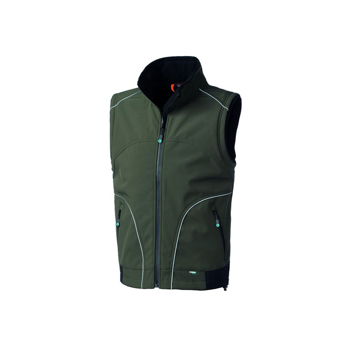 Gilet realizzato in tessuto Softshell a tre strati con chiusura centrale con zip waterproof, coulisse al fondo, profili rifrangenti anteriori e al fondo schiena. |