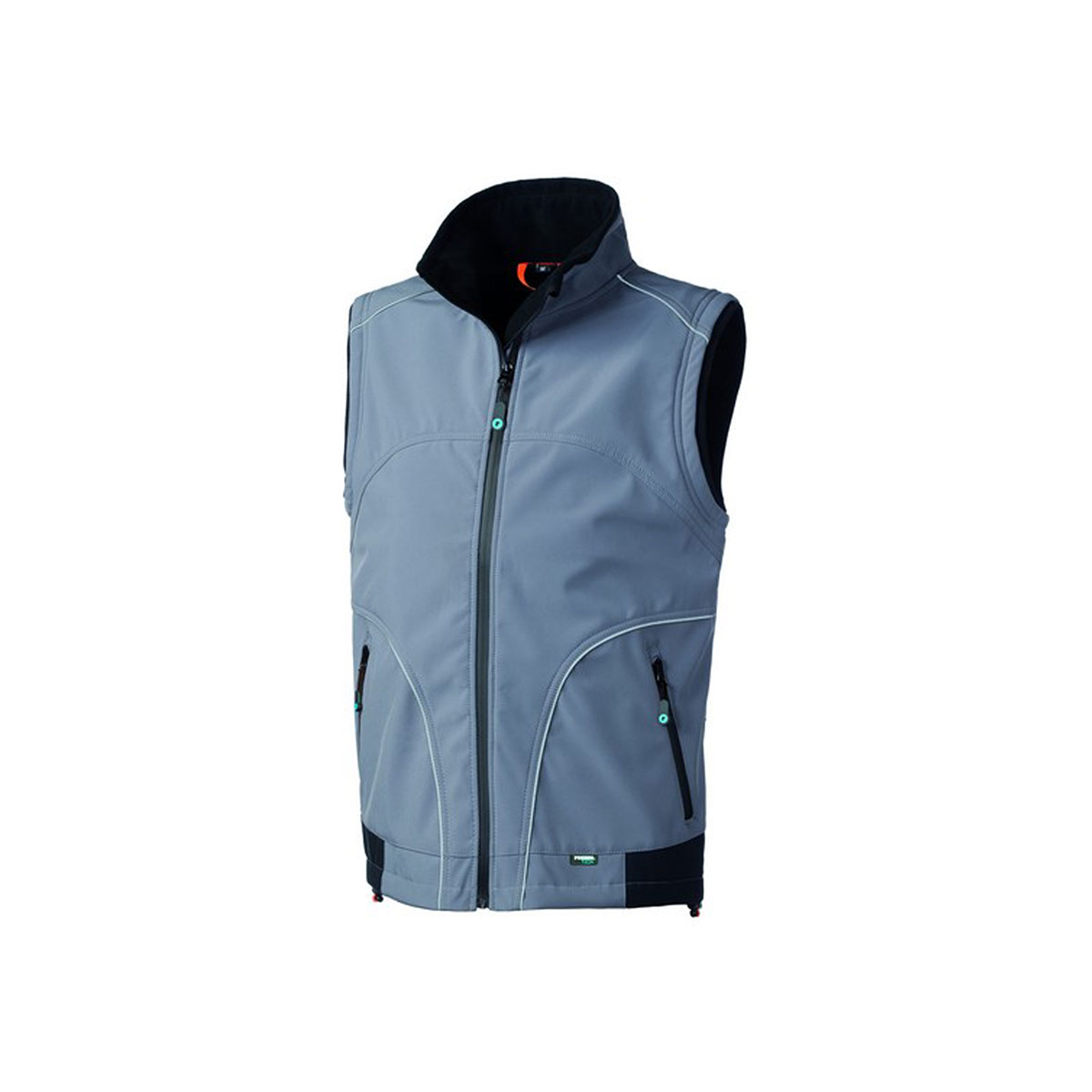 Gilet realizzato in tessuto Softshell a tre strati con chiusura centrale con zip waterproof, coulisse al fondo, profili rifrangenti anteriori e al fondo schiena. |