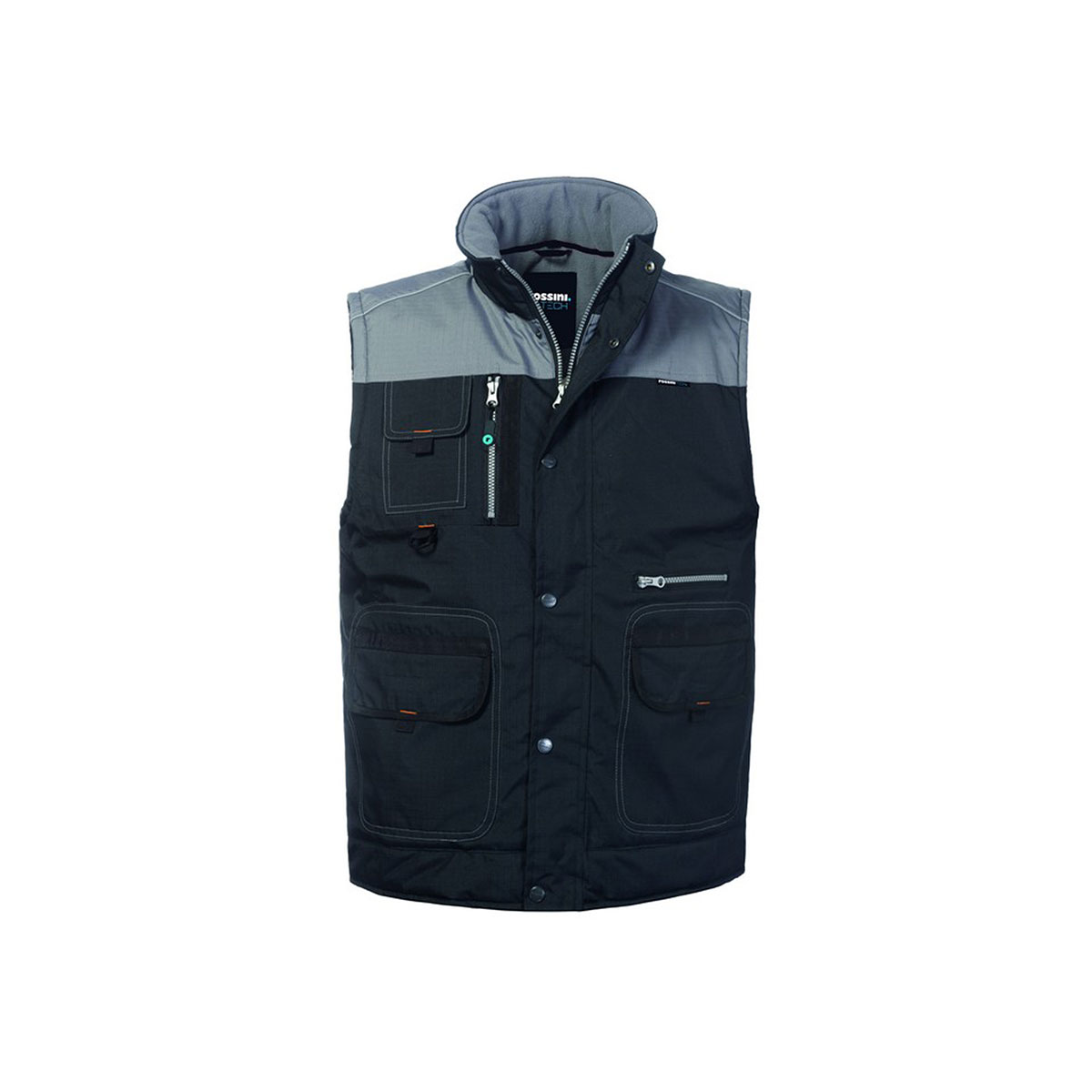 Gilet imbottito con chiusura anteriore con cerniera coperta da patella chiusa con bottoni automatici. |