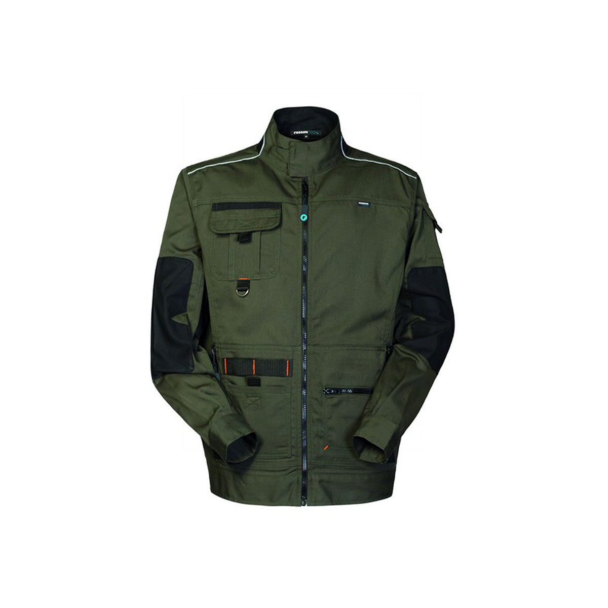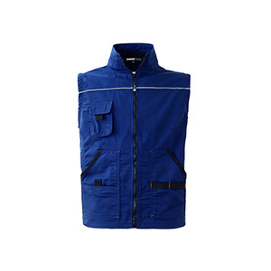 Giubbetto da lavoro con collo alla coreana con velcro e bottone automatico.
