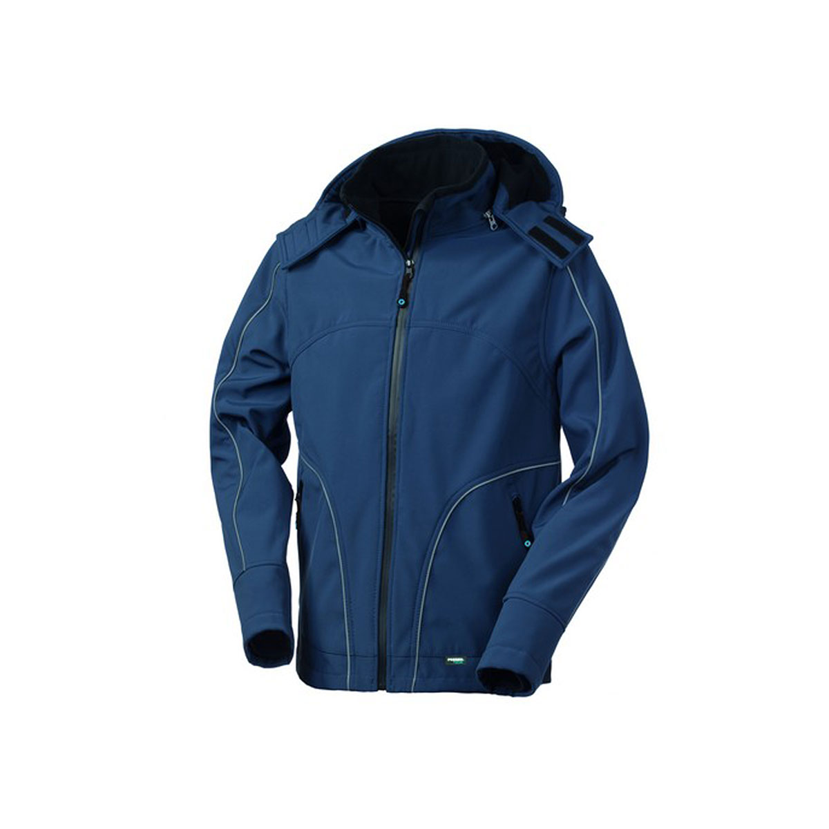 Giubbotto realizzato in tessuto Softshell a tre strati con chiusura anteriore con zip waterproof, cappuccio con coulisse e removibile con zip.