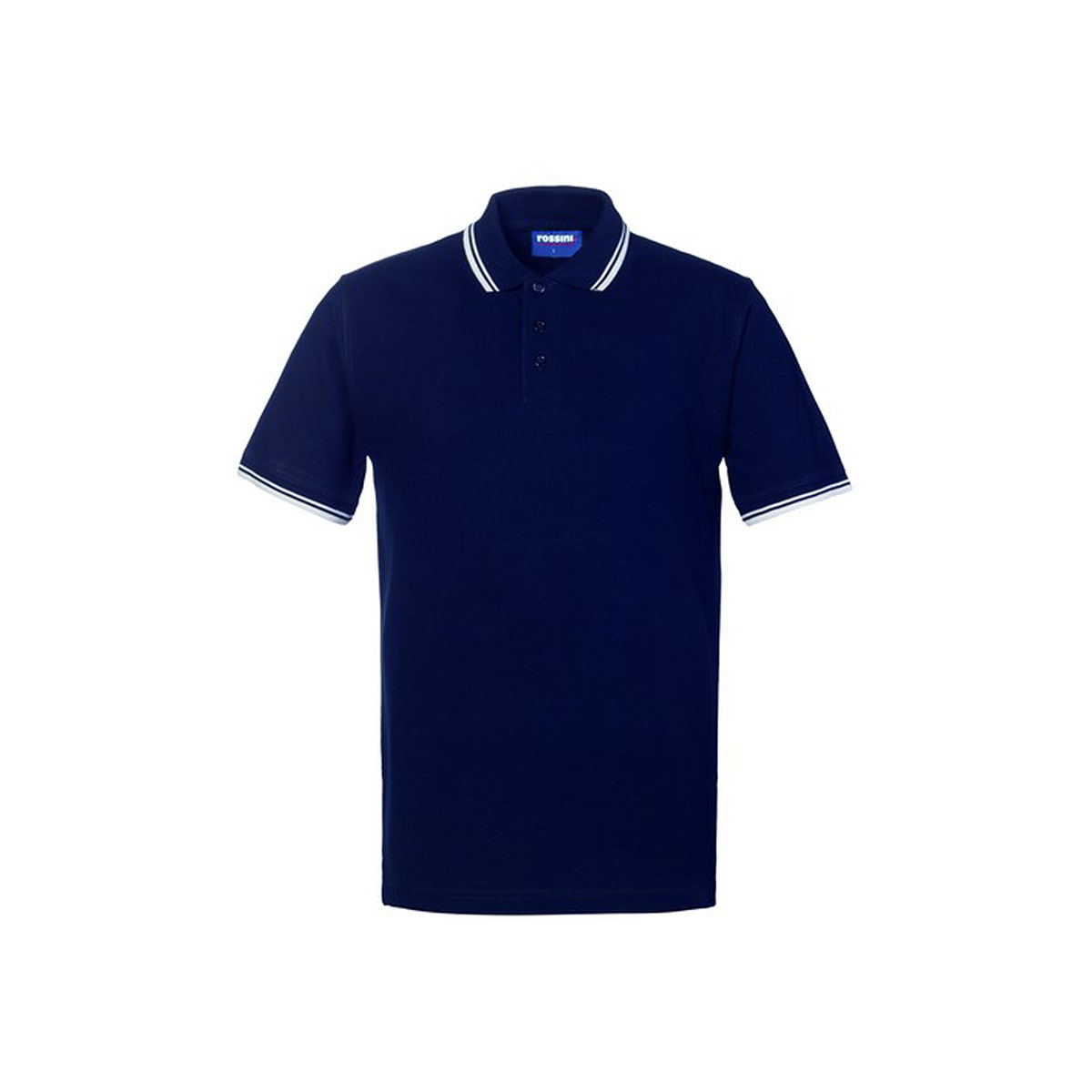 Polo mezza manica con fascia parasudore nella parte posteriore del collo, collo con profilo di colore a contrasto chiuso con tre bottoni, giro manica a costina con profili di colore a contrasto, spacchetti laterali al fondo di colore a contrasto. |