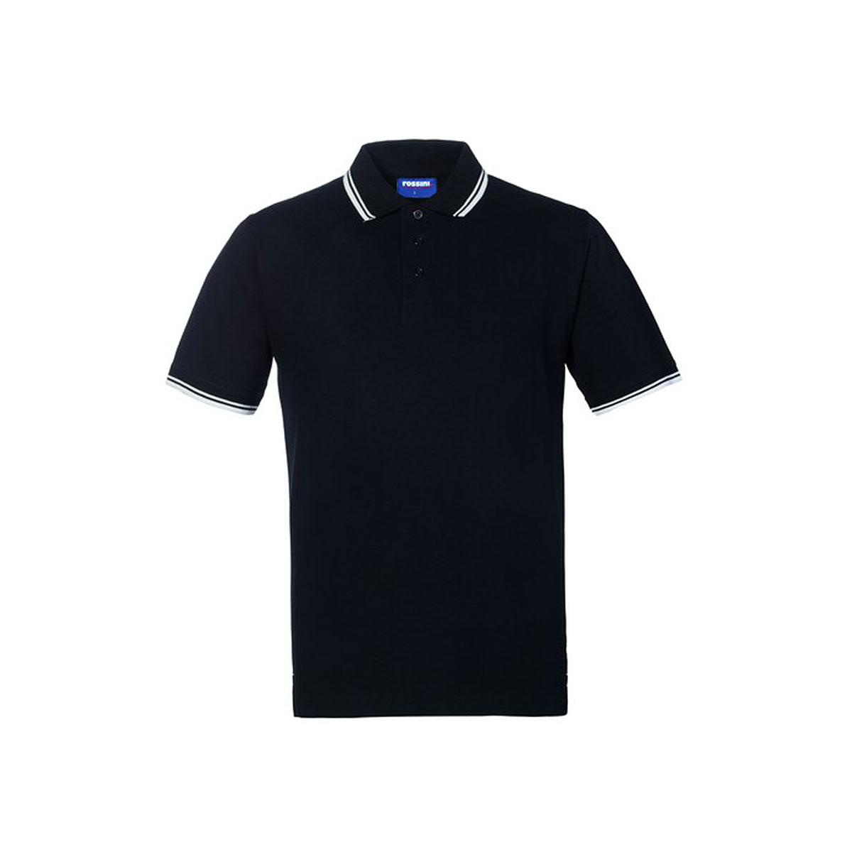 Polo mezza manica con fascia parasudore nella parte posteriore del collo, collo con profilo di colore a contrasto chiuso con tre bottoni, giro manica a costina con profili di colore a contrasto, spacchetti laterali al fondo di colore a contrasto. |