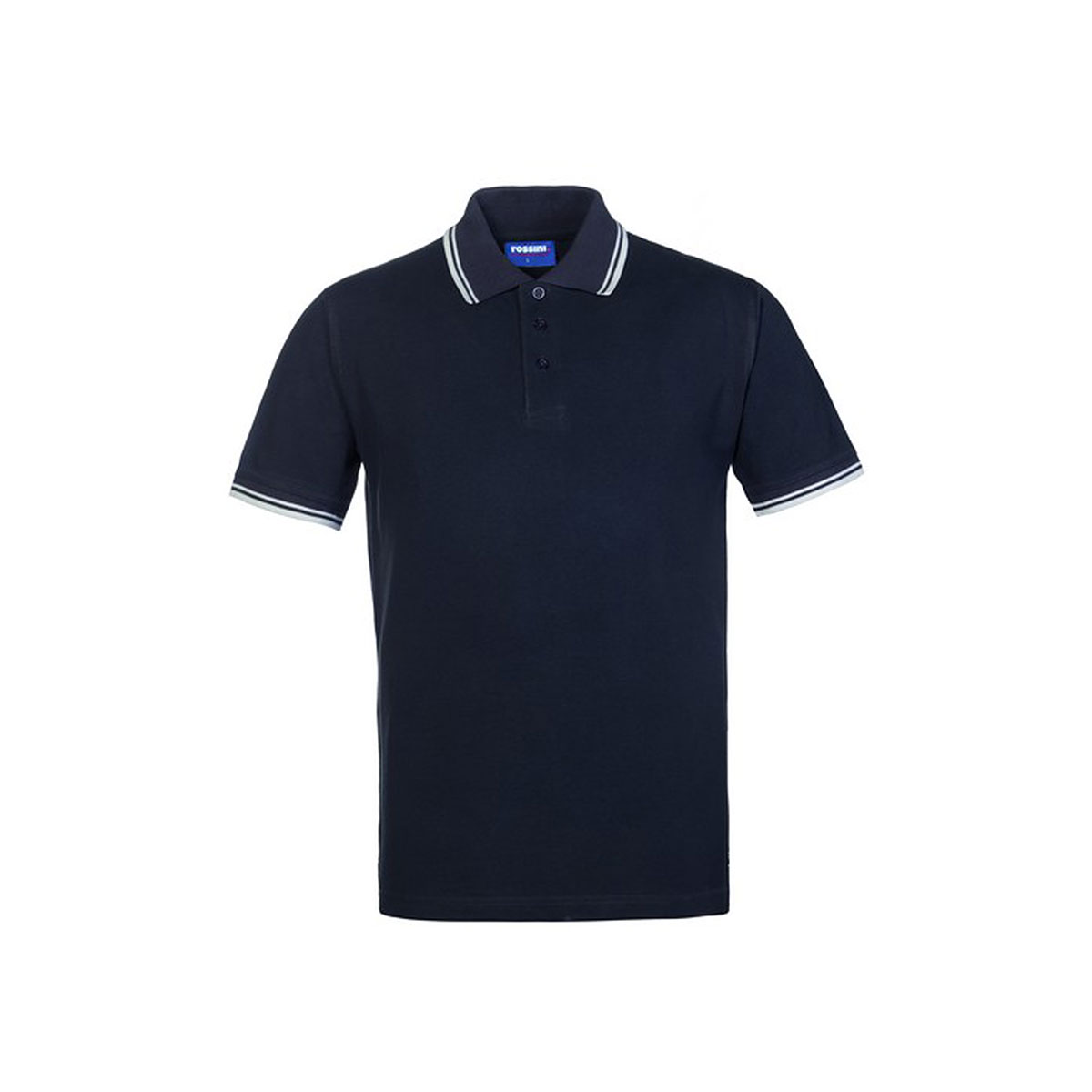 Polo mezza manica con fascia parasudore nella parte posteriore del collo, collo con profilo di colore a contrasto chiuso con tre bottoni, giro manica a costina con profili di colore a contrasto, spacchetti laterali al fondo di colore a contrasto. |
