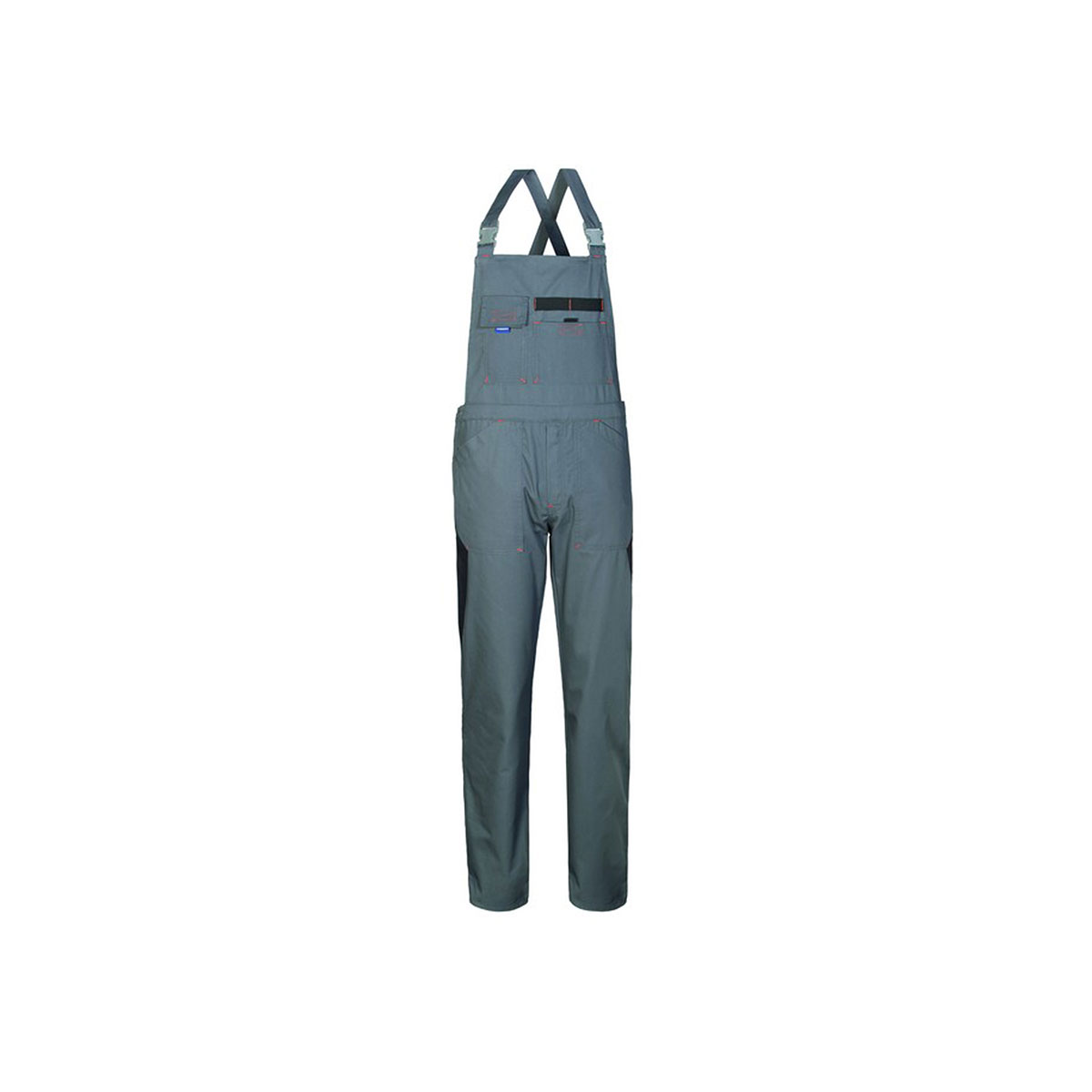 Pettorina da lavoro con bretelle con elastico interno, chiusura alla patta e cerniera.