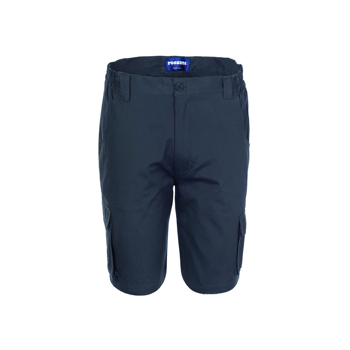 Bermuda da lavoro con elastico ai fianchi, chiusura alla patta con cerniera e bottone in cintura. |