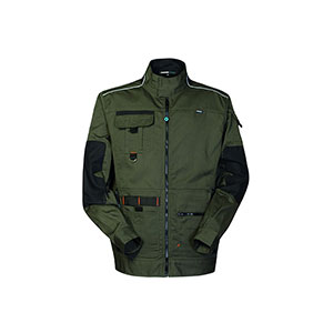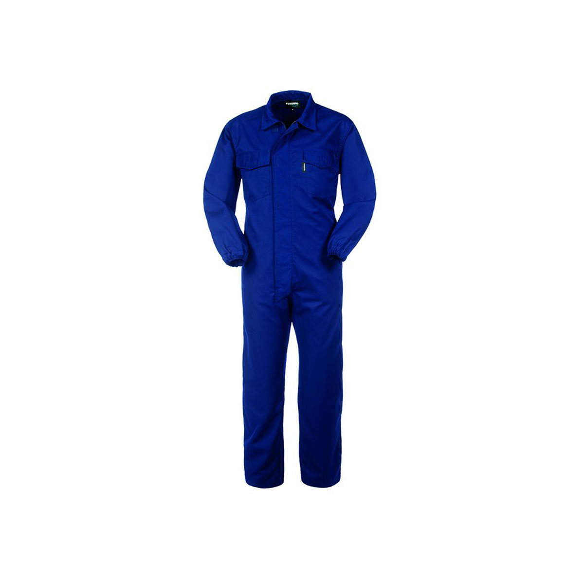 Tuta da lavoro con chiusura centrale con zip a doppio cursore coperta da patella con punti velcro.
